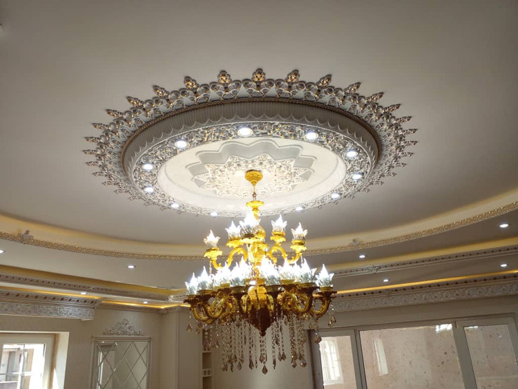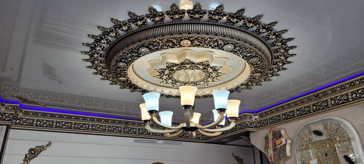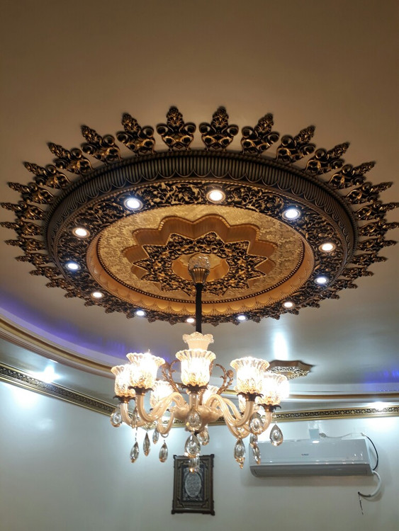 گل سقفی دور لوستری زیر لوستری دایره پی وی سی 160سانتی سپاهان سقف مدل خورشیدی کد (331)