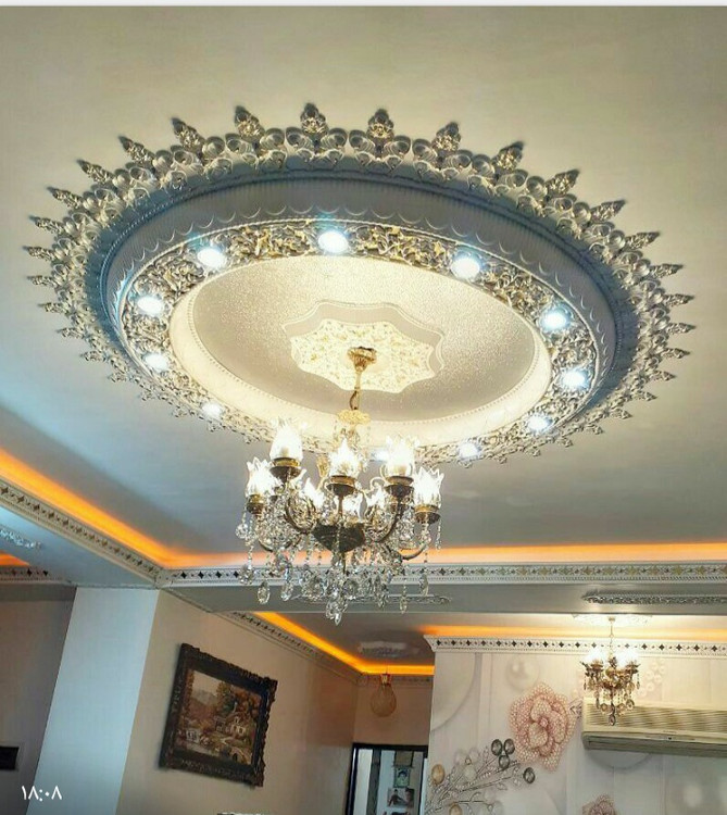گل سقفی دور لوستری زیر لوستری پی وی سی دایره 160 سانتی سپاهان سقف مدل اوکتا کد (333)