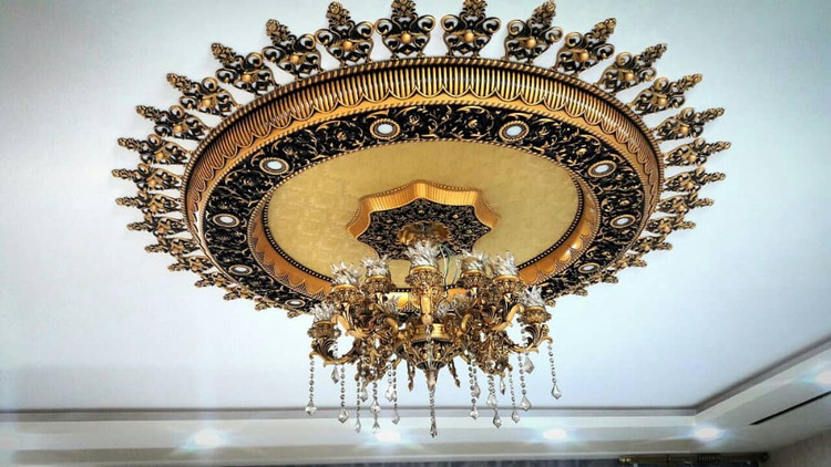 طراحی دایرهای و ساده این مدل آن را برای نصب زیر لوسترهای بزرگ و چندشاخه بسیار مناسب میسازد. این گل سقفی بهراحتی با انواع دکوراسیونهای داخلی هماهنگ شده و میتواند جلوهای شیک و مدرن به فضای شما ببخشد.