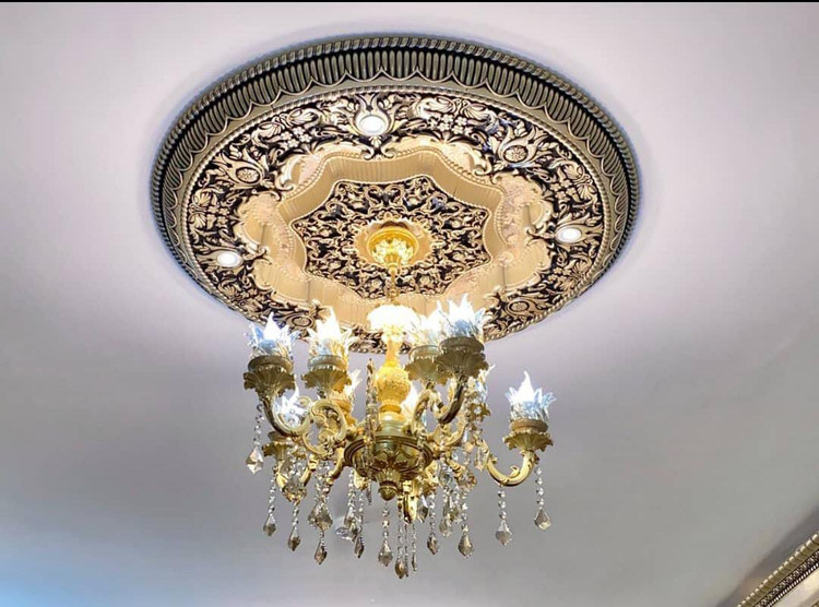 گل سقفی دور لوستری زیر لوستری دایره شمسه پی وی سی قابل شستشو سپاهان سقف  طلایی مشکی